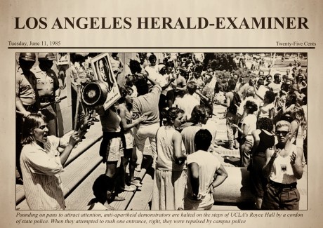 Of course, our lack of conviction, in no way, diminished the truth of what initiated the protests. In the end, they even had the desired affect. The UC Regents voted to divest all funds from the Govt. of South Africa.